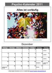 Folge stelle ich Ihnen als kleinen "Gedankenhelfer" meiner Praxis einen "Psycho-Kalender" zur Verfügung.